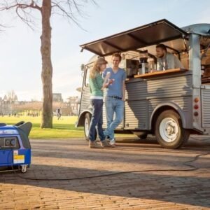 Yamaha 2,5 kVA draagbare benzine-omvormergenerator EF2500i in werking geschikt voor levering van stabiele en schone stroom voorzien van invertertechnologie voor