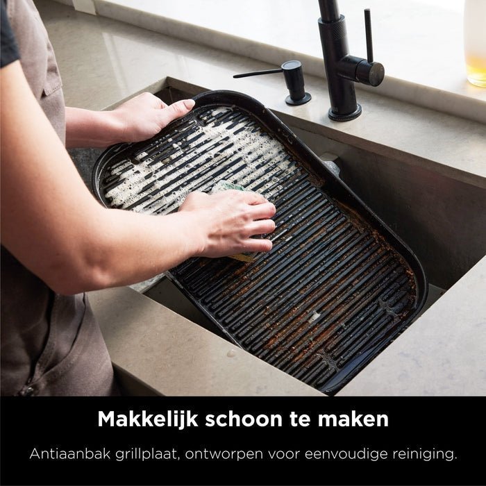 Ninja OG901EU Buitenbarbecue/Grill Tafelmodel Elektrisch Zwart 1700 W biedt krachtige prestaties en veelzijdigheid voor buitenkoken en tafelbarbecue. Elektrisch vermogen van 1700 W zorgt voor snelle opwarming, constante temperatuur en gelijkmatige garing van vlees, vis, groenten en andere gerechten. Compact tafelmodel ontwerp maakt grillen mogelijk op balkons, terrassen, tuin of kleine buitenruimtes zonder veel ruimte in beslag te nemen. Zwarte kleur en moderne afwerking geven stijlvolle uitstraling en passen bij diverse buiteninrichtingen en kookomgevingen. Geavanceerde technologie zorgt voor efficiënte warmteverdeling, waardoor elke grillbeurt consistent resultaat levert met sappige en perfect gegaarde ingrediënten. Grilloppervlak is ruim en geschikt voor meerdere porties tegelijk, ideaal voor kleine gezelschappen, familiebijeenkomsten en sociale evenementen. Eenvoudige bediening met instelbare temperatuurregeling maakt koken flexibel en gecontroleerd, geschikt voor langzaam garen, grillen of bakken. Robuuste constructie en hittebestendige materialen garanderen lange levensduur, veiligheid en eenvoudig onderhoud. Compact ontwerp en lichte structuur maken grill gemakkelijk verplaatsbaar en op te bergen. Ninja OG901EU biedt combinatie van stijlvol design, praktische functionaliteit en krachtige prestaties, perfect voor culinaire liefhebbers, hobbykoks en iedereen die buitenkoken met gemak en precisie wil ervaren.